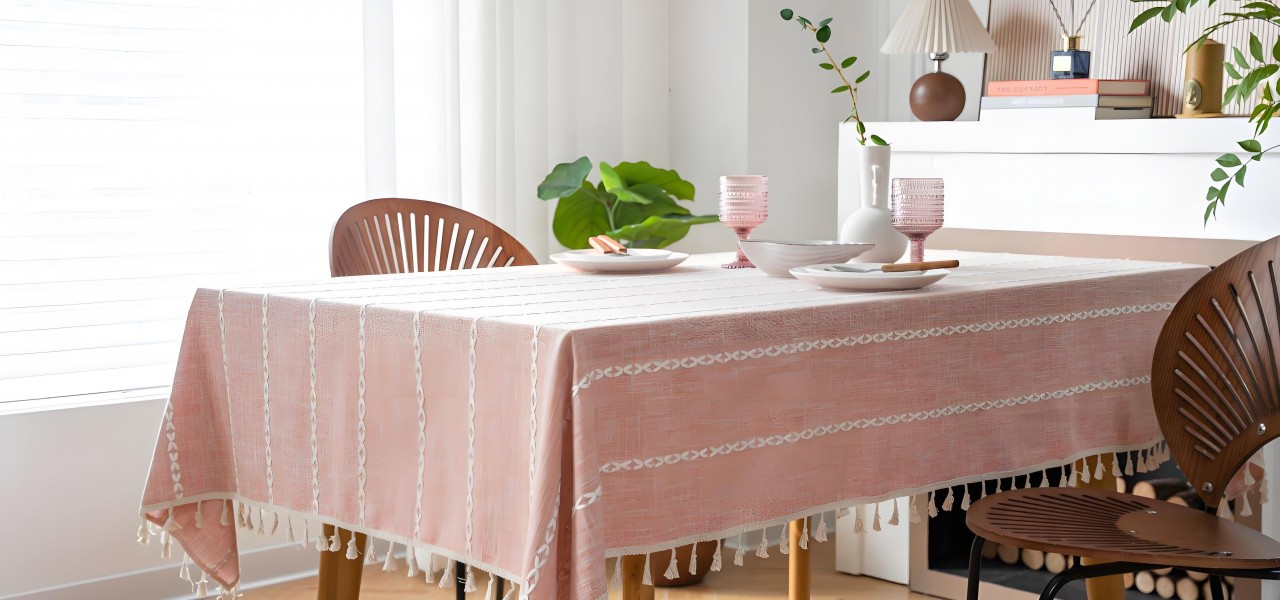 Linen-cotton blend tablecloth: Soft, breathable, striped pattern, fits casual dining, machine-washable...